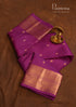 A majestic royal purple saree with subtle gold zari buttas. The broad gold-toned border and pallu are richly detailed with intricate gold zari designs, giving this saree a regal and luxurious feel.